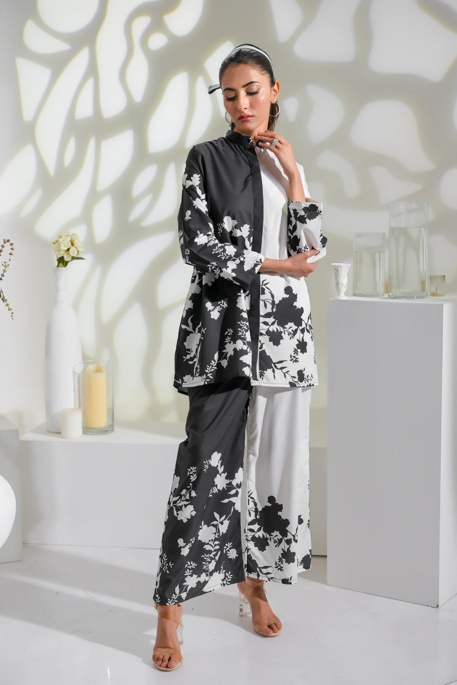 This 2 piece printed-colored co-ord set features luxurious and comfortable fabric and impeccable cuts given to every detail of the article, offering versatility and sophistication for any occasion.