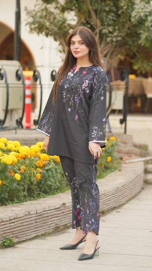 The radiant ensemble offers a unique and stylish look for any special occasion. This 2-piece suit features a chic contemporary short shirt with minimal floral prints. The matching trousers make it a trendy outfit to style at fun gatherings.