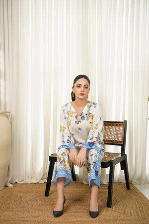This 2 piece printed-colored co-ord set features luxurious and comfortable fabric and impeccable cuts given to every detail of the article, offering versatility and sophistication for any occasion.
