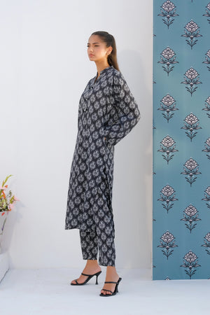 Step up your wardrobe with our exquisite printed Matching separates. This stunning 2-pc enhances intricate button detailing on the neckline of the shirt with convenient side pockets, and perfectly paired trousers.