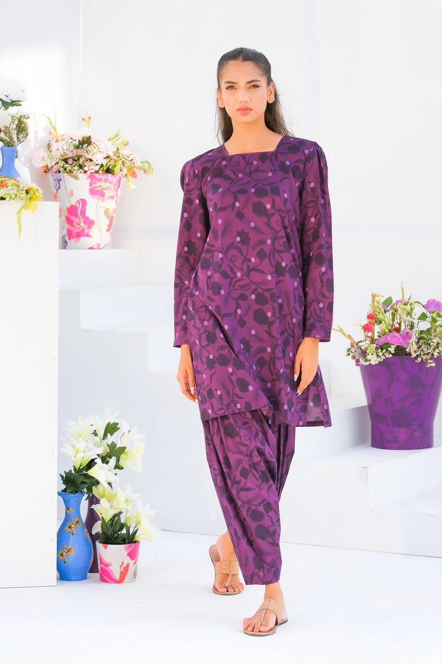 Step up your wardrobe with our exquisite printed Matching separates. This stunning 2-pc shirt has convenient side pockets and perfectly paired shalwar.