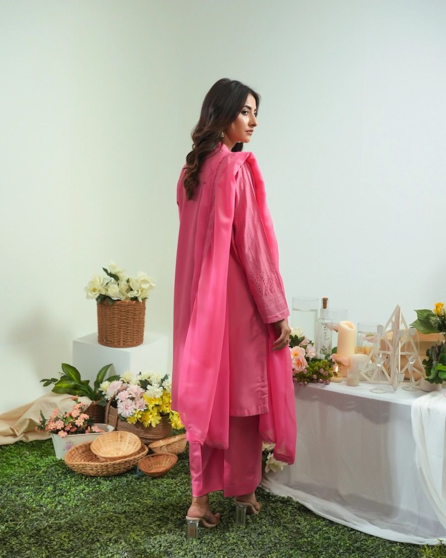 Introducing our elegant pink colored 3-piece suit. Perfect for any special occasion. -3 Piece