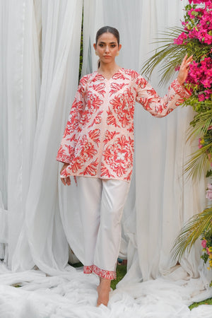 This 2 piece printed-colored co-ord set features luxurious and comfortable fabric and impeccable cuts given to every detail of the article, offering versatility and sophistication for any occasion.