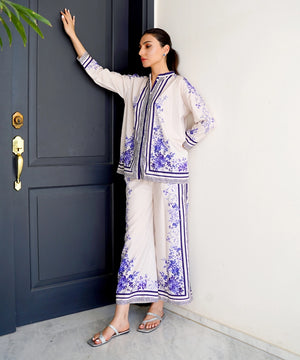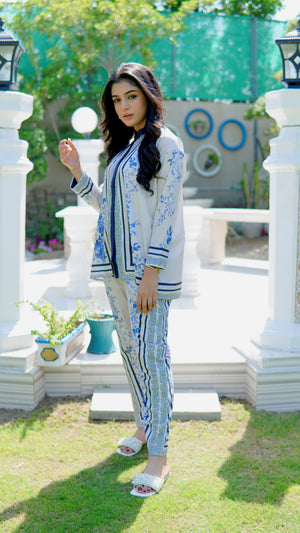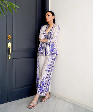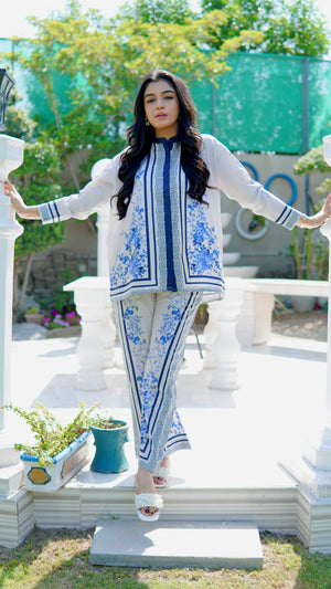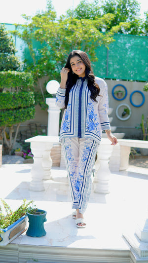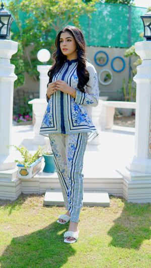 This 2 piece printed-colored co-ord set features luxurious and comfortable fabric and impeccable cuts given to every detail of the article, offering versatility and sophistication for any occasion.