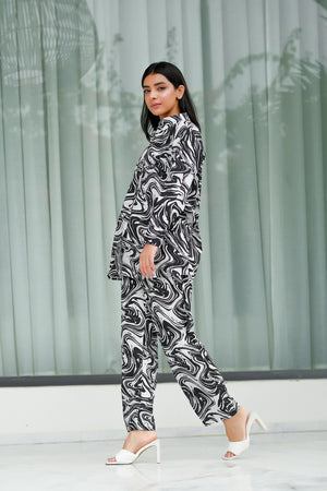 The radiant ensemble offers a unique and stylish look for any special occasion. This 2-piece suit features a chic contemporary short shirt with minimal floral prints. The matching trousers make it a trendy outfit to style at fun gatherings.