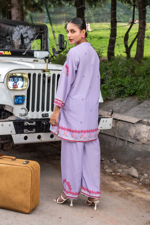 A beautifully printed two-piece featuring intricate floral patterns and a relaxed silhouette. The straight-cut shirt and matching trousers offer effortless elegance, perfect for both casual outings and semi-formal occasions.