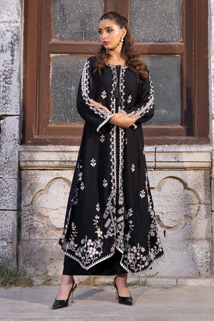 This article consists of a solid 2-piece set with an intricate embroidery detail on the shirt. The outfit consists of a long-length style shirt and fitted pants.