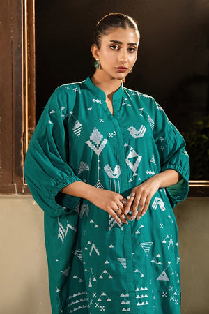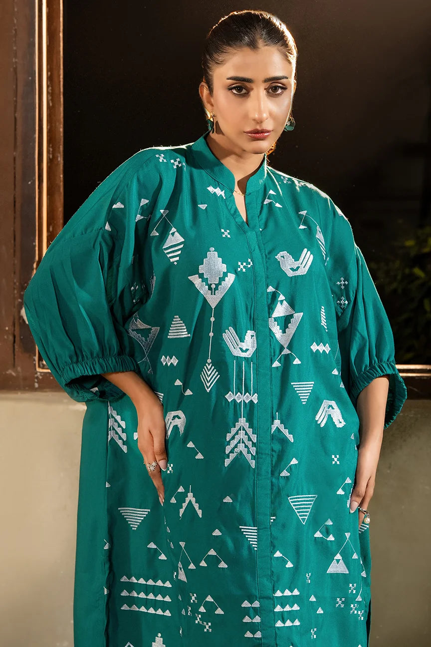 This article consists of a solid 2-piece set with an intricate embroidery detail touch on the shirt and trousers. The outfit consists of a mid-length style shirt and fitted pants.