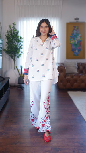 The radiant ensemble offers a unique and stylish look for any special occasion. This 2-piece suit features a chic contemporary short shirt with minimal floral prints. The matching trousers make it a trendy outfit to style at fun gatherings.