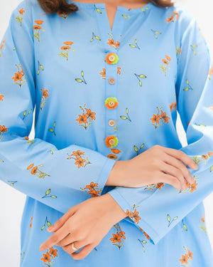 Step up your wardrobe with our exquisite printed Matching separates. This stunning 2-pc enhances intricate button detailing on the neckline of the shirt with convenient side pockets, and perfectly paired trousers.