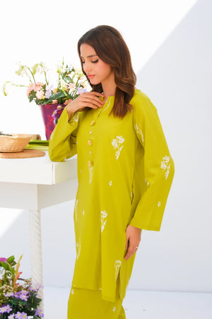 Step up your wardrobe with our exquisite printed Matching separates. This stunning 2-pc enhances intricate button detailing on the neckline of the shirt with convenient side pockets, and perfectly paired trousers.