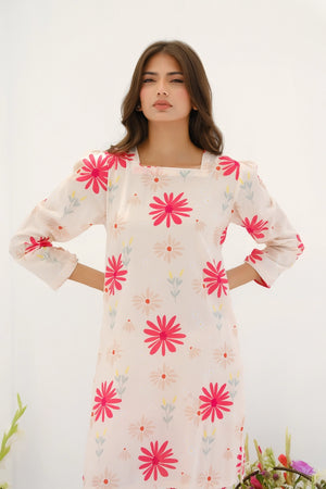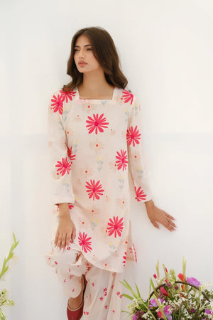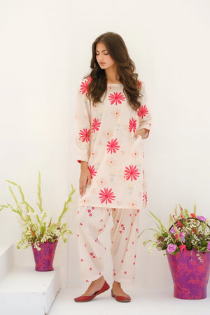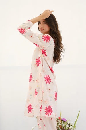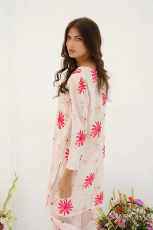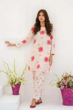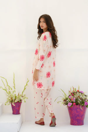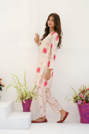 Step up your wardrobe with our exquisite printed Matching separates. This stunning 2-pc shirt has convenient side pockets and perfectly paired shalwar.