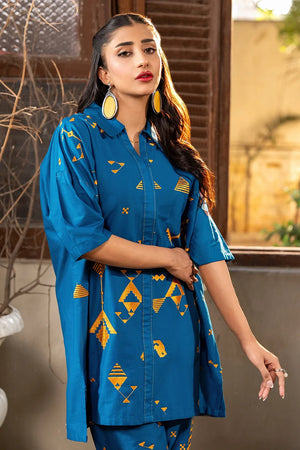 This article consists of a solid 2-piece set with an intricate embroidery detail touch on the shirt and trousers. The outfit consists of a mid-length style shirt and fitted pants.