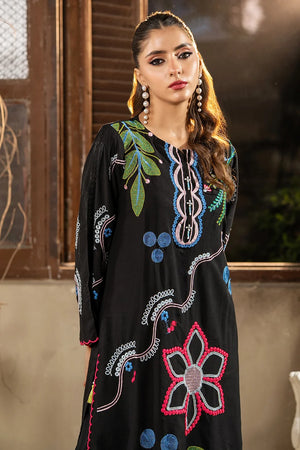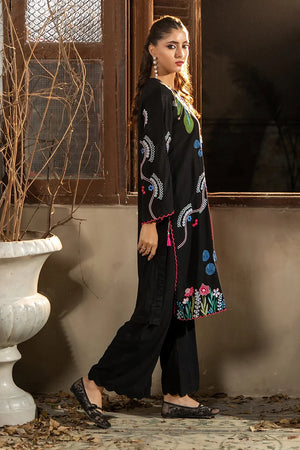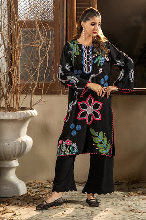This article consists of a solid 2-piece set with an intricate embroidery detail touch on the shirt and trousers. The outfit consists of a mid-length style shirt and fitted pants.