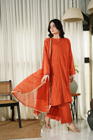 This article consists of a solid 3-piece set with an intricate embroidery detail touch on the shirt. The outfit consists of a long-length style shirt and fitted pants.