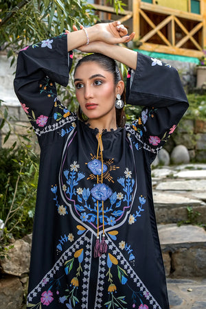 A stylish 1-piece long kaftan with a loose-fit cut, loop neckline, and chic printed tassels on the front. Perfect for effortless elegance and comfort.