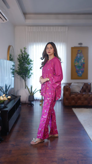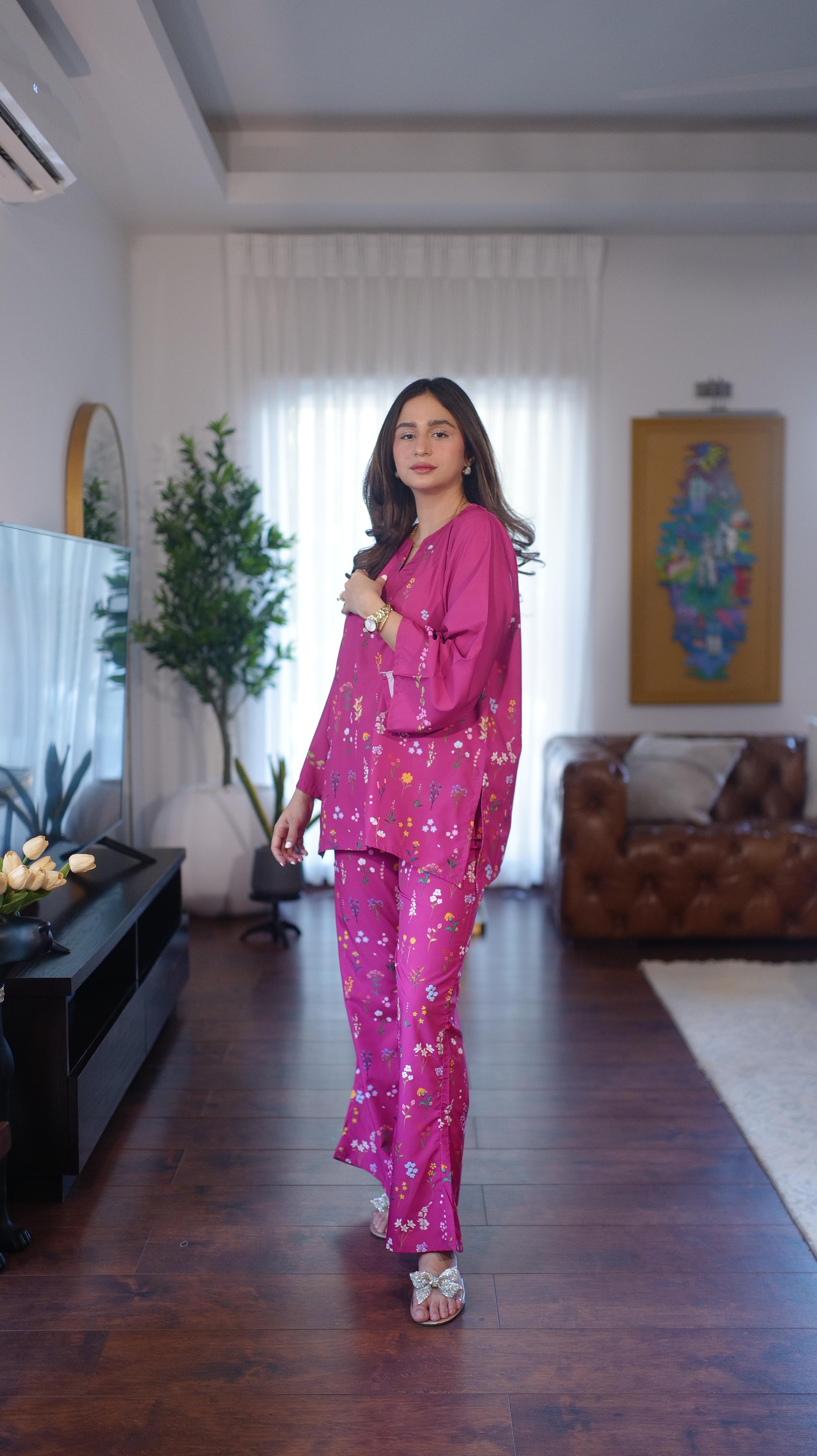 The radiant ensemble offers a unique and stylish look for any special occasion. This 2-piece suit features a chic contemporary short shirt with minimal floral prints. The matching trousers make it a trendy outfit to style at fun gatherings.