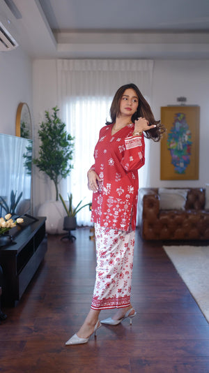 This 2 piece printed-colored co-ord set features luxurious and comfortable fabric and impeccable cuts given to every detail of the article, offering versatility and sophistication for any occasion.