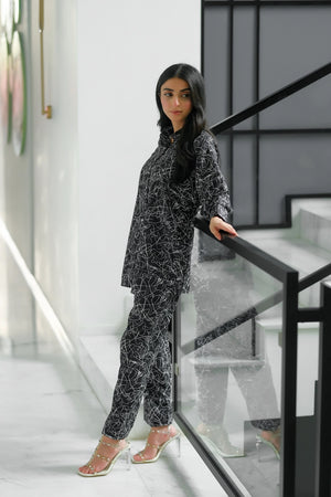 The radiant ensemble offers a unique and stylish look for any special occasion. This 2-piece suit features a chic contemporary short shirt with minimal floral prints. The matching trousers make it a trendy outfit to style at fun gatherings.