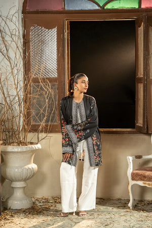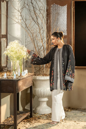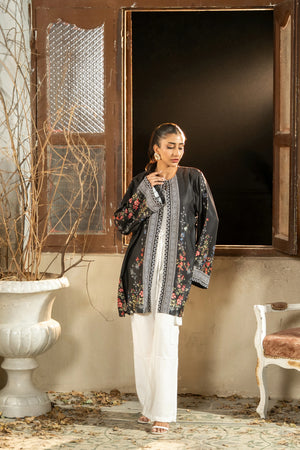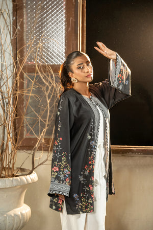 A beautifully printed one-piece featuring intricate floral patterns and a relaxed silhouette. The straight-cut shrug offers effortless elegance, perfect for both casual outings and semi-formal occasions.
