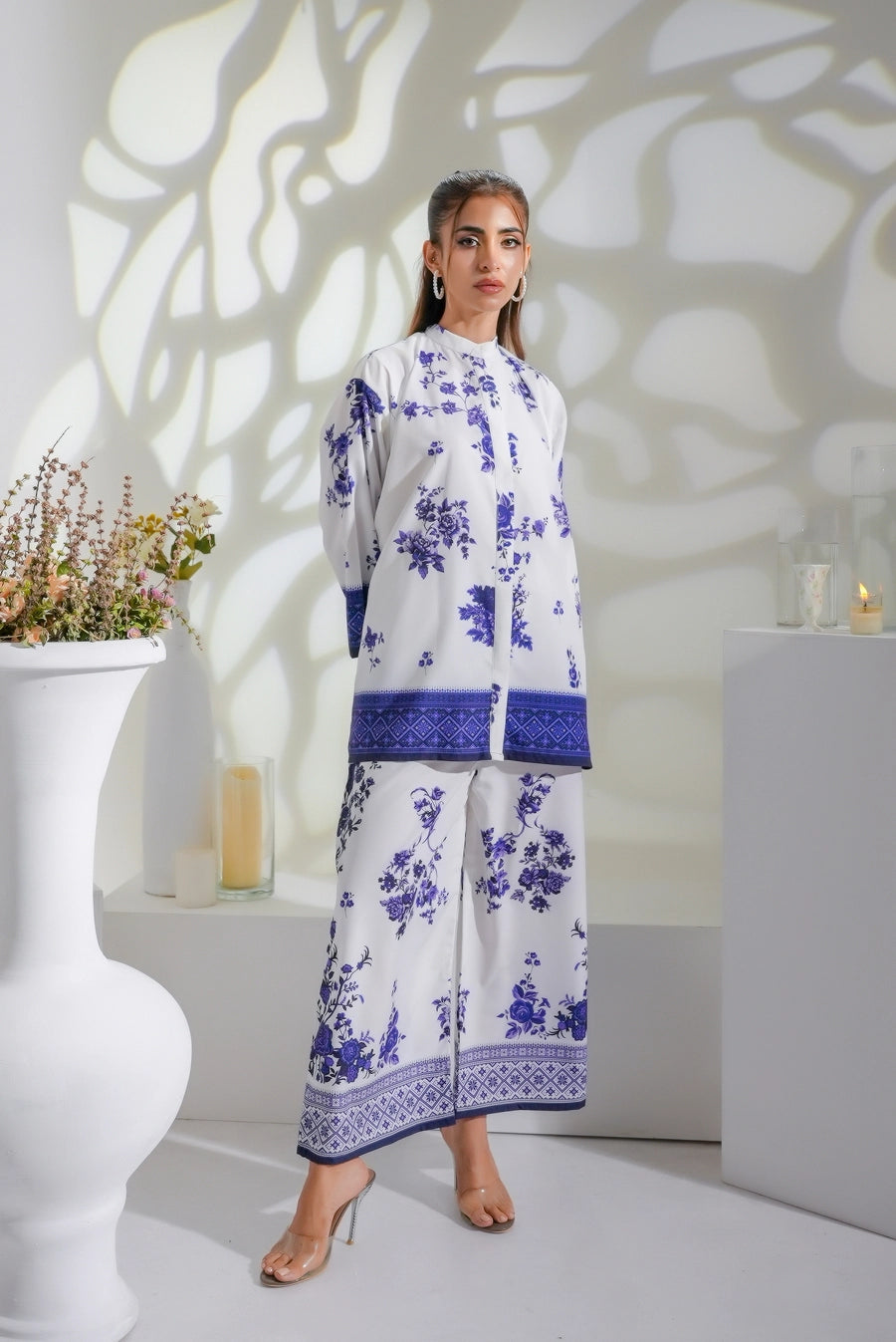 This 2 piece printed-colored co-ord set features luxurious and comfortable fabric and impeccable cuts given to every detail of the article, offering versatility and sophistication for any occasion.